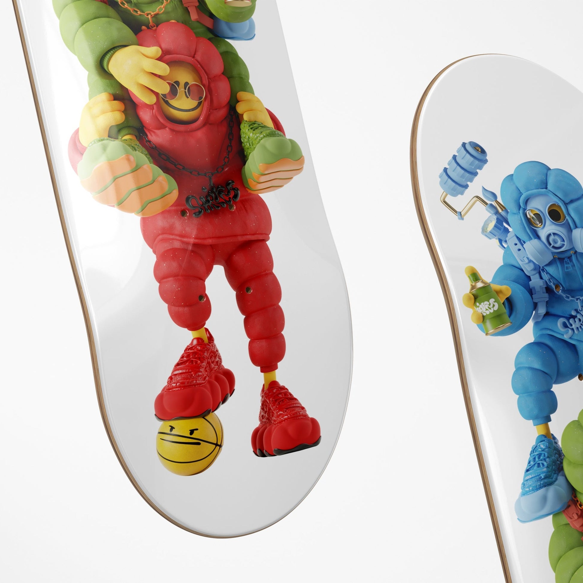 Crafted from premium 7-ply 100% Canadian maple, this 8.5-inch skateboard showcases vibrant artwork that pulsates with the dynamic energy of street art.